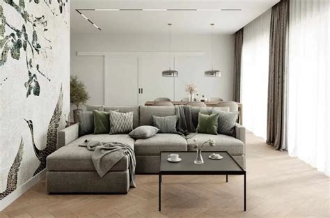 Poilsio zonoje - subtilios žalios spalvos patogi trivietė sofa, modernaus rašto kilimas, išskirtinis juodas kavos staliukas. „Staliukas yra su rankų darbo natūraliu betoniniu juodos spalvos stalviršiu. Plono metalinio profilio kojos sudaro lengvumo įspūdį, bet tvirtai laiko masyvų betono stalviršį, svarbu paminėti, kad stalviršis impregnuotas ir paruoštas ilgam naudojimui. Langų pridengimui svetainėje ir miegamajame pasirinkome dienines ir naktines užuolaidas, norint sukurti privatumą ir jaukumo pojūtį“, - pasakoja D. Sakevičė.