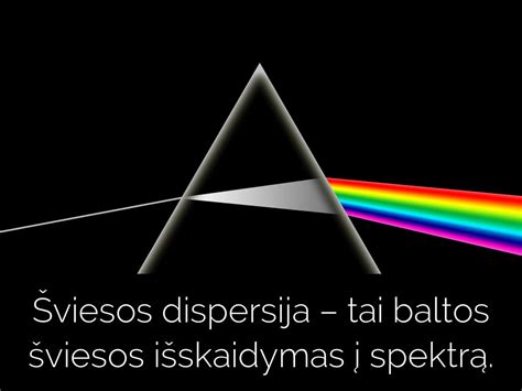 Baltos šviesos skaidymasis į spektrą vadinamas dispersija. Šviesos dispersija - tai aplinkos lūžio rodiklio priklausomybė nuo šviesos bangosilgio. Skirtingų bangos ilgių šviesa tam tikroje aplinkoje sklinda skirtingais greičiais ir skirtingai lūžta.