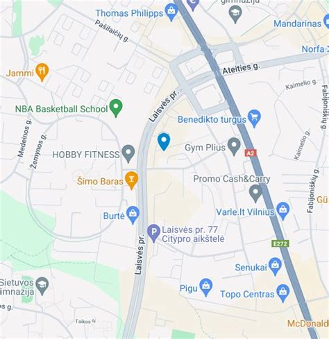 Google Maps Vilniaus centro žemėlapis su sužymėtais pabėgimo kambariais.