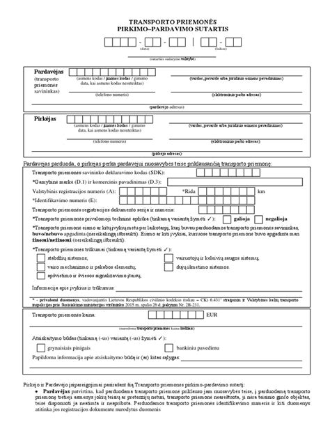| Šalių duomenys | Tikslūs pirkėjo ir pardavėjo duomenys | Teisinis pagrindas |