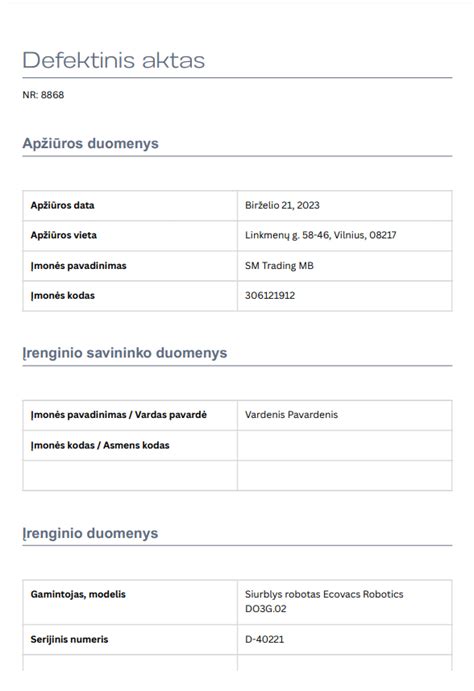 - Užstatas (Depozitas): Nurodyti nuomos užstatą (depozitą).