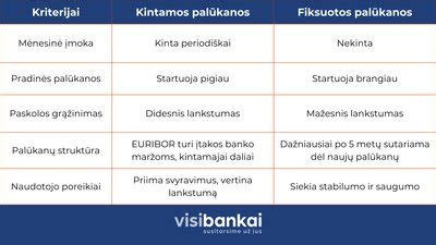 - Didesnis išankstinio grąžinimo mokestis: Kintamų palūkanų paskolų išankstinio grąžinimo mokesčiai gali būti didesni nei kintamų palūkanų paskolų.