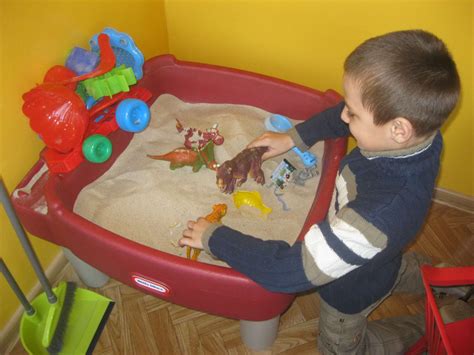 - Sensorinė dėžė: Pripildykite dėžę ryžiais, pupelėmis, smėliu ar kitomis medžiagomis. Paslėpkite dėžėje smulkius žaislus ir paprašykite vaiko juos surasti, lavindamas lytėjimą ir smulkiąją motoriką.
