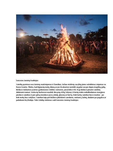 Lietuvoje ši diena nuo seno buvo siejama su gamtos ciklais, derliaus laukimu ir tradiciniais papročiais. Joninių tradicijos pasižymi savo įvairove - nuo vainikų pynimo ir plukdymo upėse iki magiškų laužų uždegimo, kurie simbolizuoja šviesos pergalę prieš tamsą. Taip pat šventę lydi daugybė žaidimų, dainų ir šokių, kuriais džiugina tiek vaikai, tiek suaugusieji.