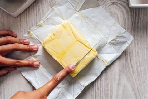 - Sviestą padalinkite į dalis. Jei neplanuojate naudoti viso gabaliuko iš karto, verta jį padalinti į smulkesnes dalis. Taip atitirpinsite tik tiek, kiek šiuo metu reikia.