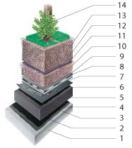 Žalias stogas susideda iš kelių sluoksnių, kurie užtikrina jo funkcionalumą ir ilgaamžiškumą: