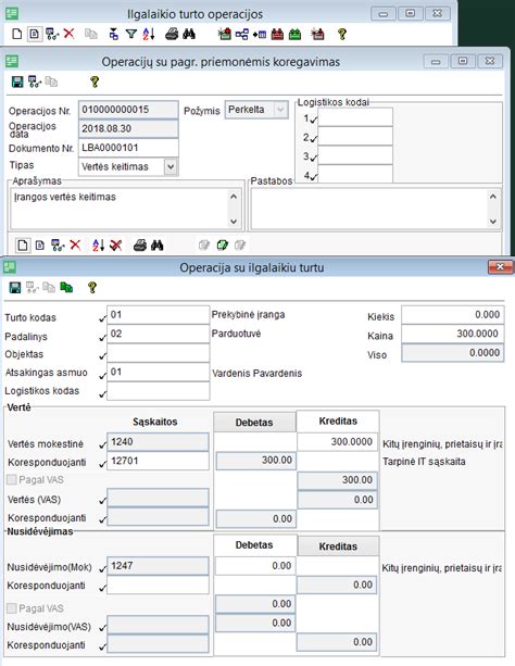 a)Kai ilgalaikis turtas perleidžiamas už kainą, lygią jo vertei (likutinei vertei), fiksuojamas tik ilgalaikio turto pakeitimas į pinigus. Todėl savininkų nuosavybė dėl to nesikeičia. Pavyzdžiui, įmonė “XX” nutaria parduoti automobilį, kurio likutinė vertė - 20 000 Lt, ( pradinė vertė - 30 000 Lt., nusidėvėjimo suma - 10 000 Lt.) už kainą, lygią likutinei vertei (20 000 Lt.), ir pinigai už parduotą automobilį gaunami tą pačią dieną.