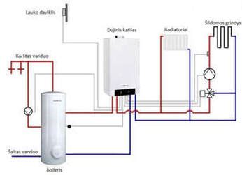 - Dujinis katilas - pagrindinis sistemos elementas, atsakingas už šilumos gamybą.