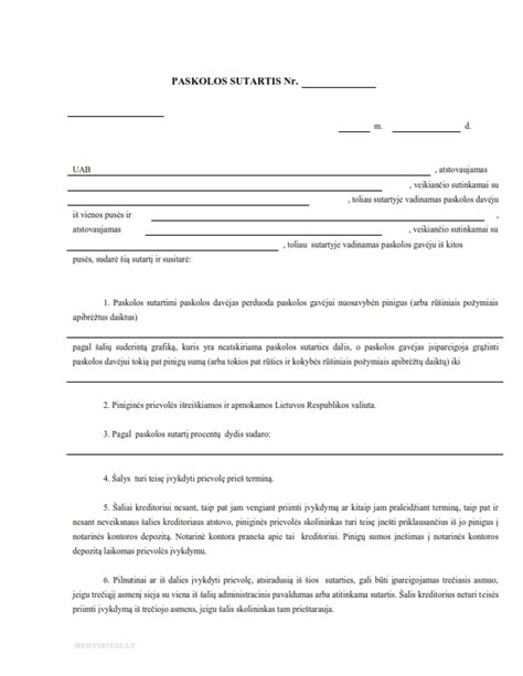 Mokestinės paskolos sutarties pavyzdys