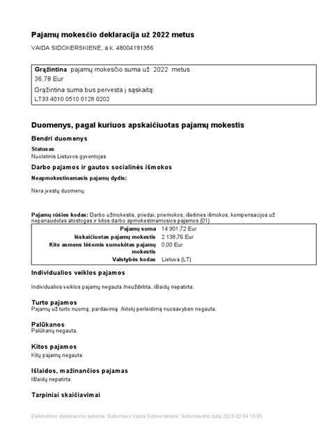 Pajamų deklaracijos GPM311 formos pavyzdys