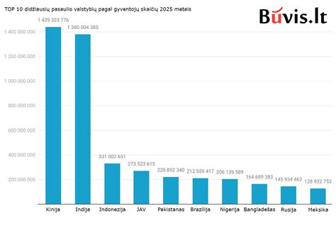 Pagal naujausius 2025-ųjų duomenis, keletas pasaulio valstybių išsiskiria itin didele gyventojų koncentracija. Šalių išsidėstymas pagal gyventojų skaičių pakito, o kai kurios valstybės įtvirtino savo pozicijas kaip tikros pasaulio „milžinės“.