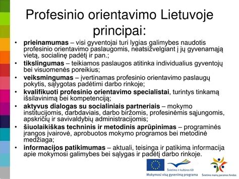 - Profesinio orientavimo turinio išmanymas