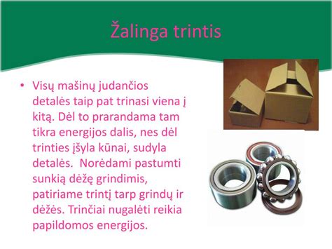 Bandydami pastumti sunkią dėžę grindimis, patiriame trintį tarp grindų ir dėžės. Trinčiai nugalėti reikia papildomos energijos.