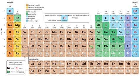 | Chloras (Cl) | Dujos | Dezinfekcija, chemijos pramonė |