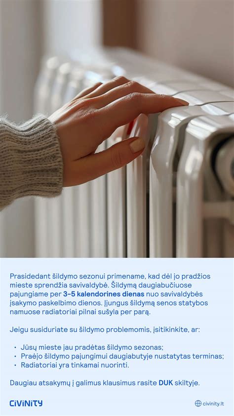 Šildymo sezono pradžią ir pabaigą daugiabučiuose nustato miestų savivaldybės, kai oro temperatūra tris paras iš eilės nukrenta žemiau 10 laipsnių. Tiesa, gyventojams pageidaujant, šildymą galima įjungti ir anksčiau, tačiau tuomet reikia kreiptis į savo namo administratorių.