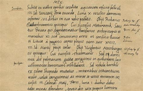 "Šventasis Brunonas, kuris vadinamas Bonifacu, arkivyskupas ir vienuolis, vienuoliktaisiais savo atsivertimo metais Rusios ir Lietuvos pasienyje pagonių nukirsdintas, su 18 saviškių, 7. kovo Idų dieną (1009 m.) iškeliavo danguosna."