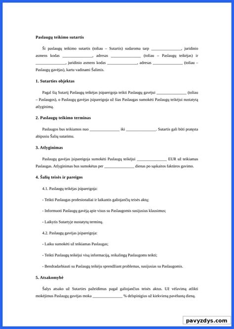 - Atsiskaitymo tvarka: Aiškiai apibrėžkite atsiskaitymo tvarką ir terminus.