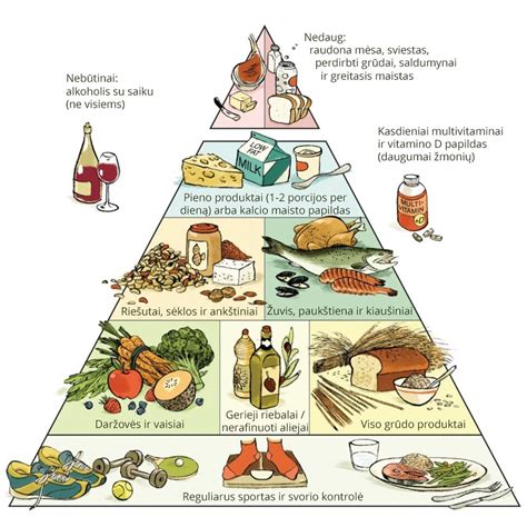 - Rinktis sveiką maistą: neapdorotus arba minimaliai perdirbtus produktus, gausius vitaminų, mineralų ir antioksidantų.