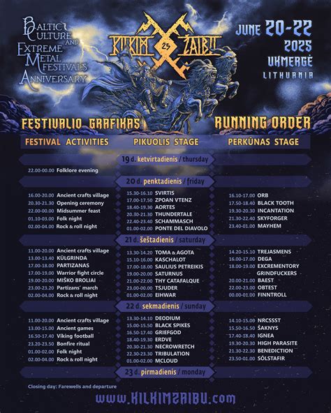 - „Kilkim Žaibu“: XIX-asis senųjų tradicijų, karybos ir tamsiojo meno kulto festivalis, vykstantis birželio 28-30 d. Varniuose, prie Lūksto ežero.