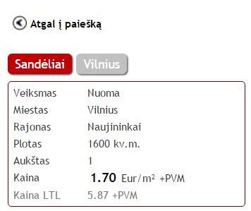 - Sandėlis: 1352,5 kv. m. - 3 Eur/kv. m.