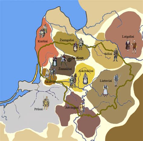 Baltų genčių žemėlapis apie 1200 m. e. m.