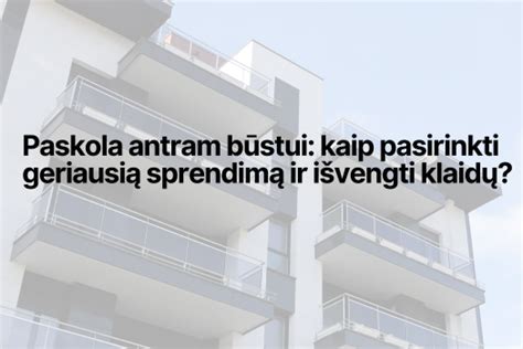 Paskola antram būstui gali būti puiki investicija ir galimybė pagerinti gyvenimo kokybę. Tačiau būtina atsakingai įvertinti savo finansines galimybes ir atidžiai išnagrinėti visas paskolos sąlygas. Venkite dažniausiai pasitaikančių klaidų ir laikykitės patarimų, kaip sumažinti paskolos palūkanų normas. Jei negaunate paskolos, nenusiminkite ir ieškokite alternatyvių sprendimų. Galiausiai, atminkite, kad paskola antram būstui yra ilgalaikis įsipareigojimas, todėl būtina gerai pasiruošti ir atsakingai priimti sprendimus.