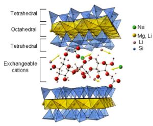 Molius sudaro įvairios sluoksninės silikatinės struktūros. Pavyzdžiui, kaolinitą sudaro dvisluoksnė (1 tetraedrų ir 1 oktaedrų sluoksniai), o montmorilonitą - sudėtinga trisluoksnė (oktaedrų sluoksnis tarp 2 tetraedrų sluoksnių) struktūra.