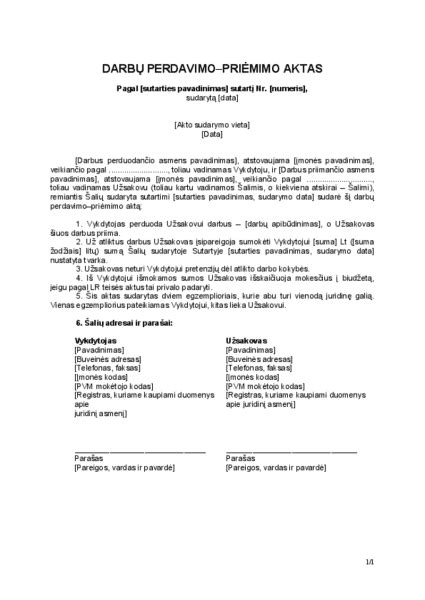 Perdavimo Akto Pasirašymo Tvarka