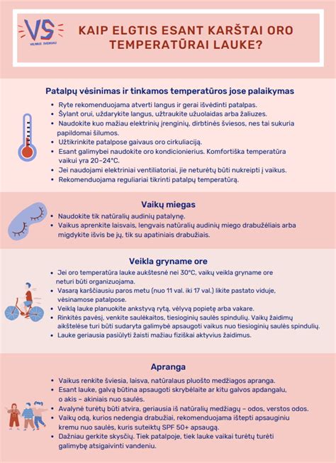 Lauke tvyrant karščiams svarbu užtikrinti saugų vaikų ugdymą lauko erdvėse ir išvengti pavojaus vaikų sveikatai. Atkreipiame dėmesį, kad karštuoju metų laiku būtina ypač saugoti vaikus, kurie priklauso jautriai karščiui žmonių grupei. Siunčiame infografiką ir dalinamės rekomendacijomis bei patarimais, kaip elgtis ikimokyklinio ugdymo įstaigoms esant karščio poveikiui.