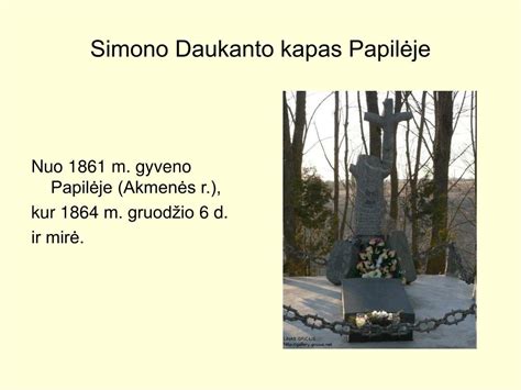 Ilgai jis tenai ilsėjosi beveik visų pamirštas, retai kieno lankomas-- nes dar ilgai tęsėsi tamsūs Lietuvos laikai. Ir tik dabar, kitiems laikams atėjus, jaunimas jam atminti įtaisė toje pačioje Papilėje „Simono Daukanto“ knygyną, norėdami skleisti per knygas šviesą, dėl kurios taip S. Daukantas kovojo.