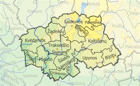 Šilalės rajono žemėlapis. Upyna įsikūrusi šio rajono teritorijoje.