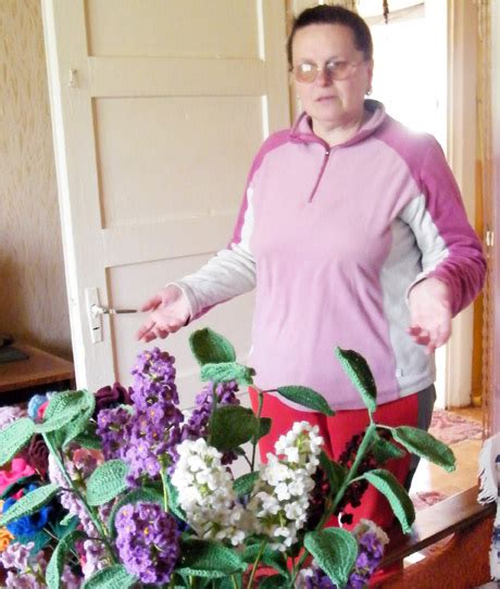 Įgūdžių megzti ji jau turėjo, nes anksčiau sau ir sutuoktiniui mezgė drabužius, nėrė servetėles. Dabar mezga vien gėles.