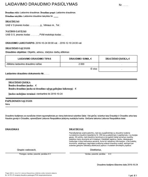 | Statinio draudimas | Sienos, langai, durys, inžinerinės sistemos, vidaus apdaila | Draudimo suma (konkreti ar atkuriamoji vertė), visų pastato dalių įtraukimas |
