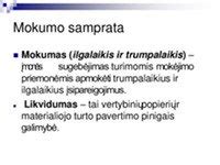 | Mokumo koeficientas | Trumpalaikis turtas / Trumpalaikiai įsipareigojimai | Rodo įmonės gebėjimą padengti trumpalaikius įsipareigojimus. |