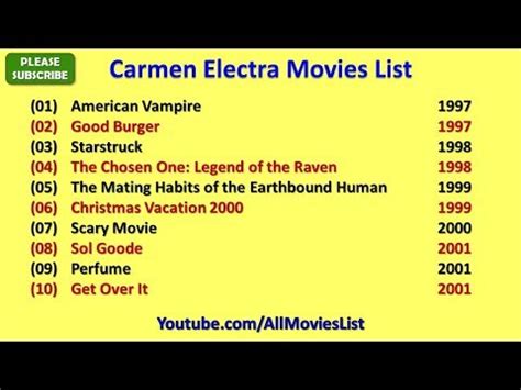 Žemiau pateikiama lentelė, kurioje apibendrinami pagrindiniai Carmen Electra karjeros etapai ir veikla: