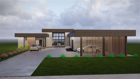 Modernus, vieno aukšto namo projektas, sudėtingesnė, bet namui įdomumo suteikianti konstrukcinė schema. Svetainė sujungta su virtuve, didelės vitrinos svetainėje. Tėvų miegamasis su atskira drabužine ir vonia. Galima perplanuoti. Galimybė įsirengti židinį. Miegamoji zona atskirta nuo gyvenamosios zonos. Dvišlaitis, įdomus stogas. Stoginė dviems automobiliams (gali atsisakyti). Kompaktiškas namo projekto plotas ~110 m2. Galimi pakeitimai projekte.