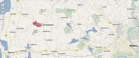 Alytaus rajono žemėlapis. Krokialaukio seniūnija yra vakarinėje dalyje.