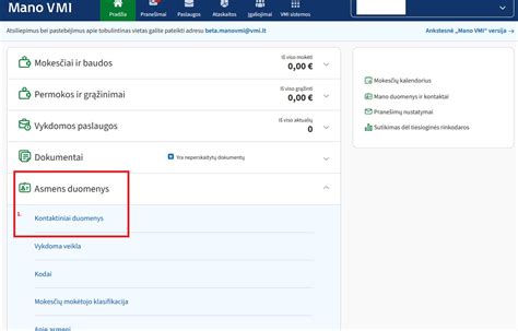 - Prisijunkite prie Mano VMI sistemos.